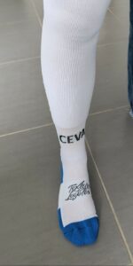 Matière très douce et souple, haut en Prolen et pied en coton, avec un renfort à l’avant pour mieux protéger le tibia par rapport à des chaussettes classiques.